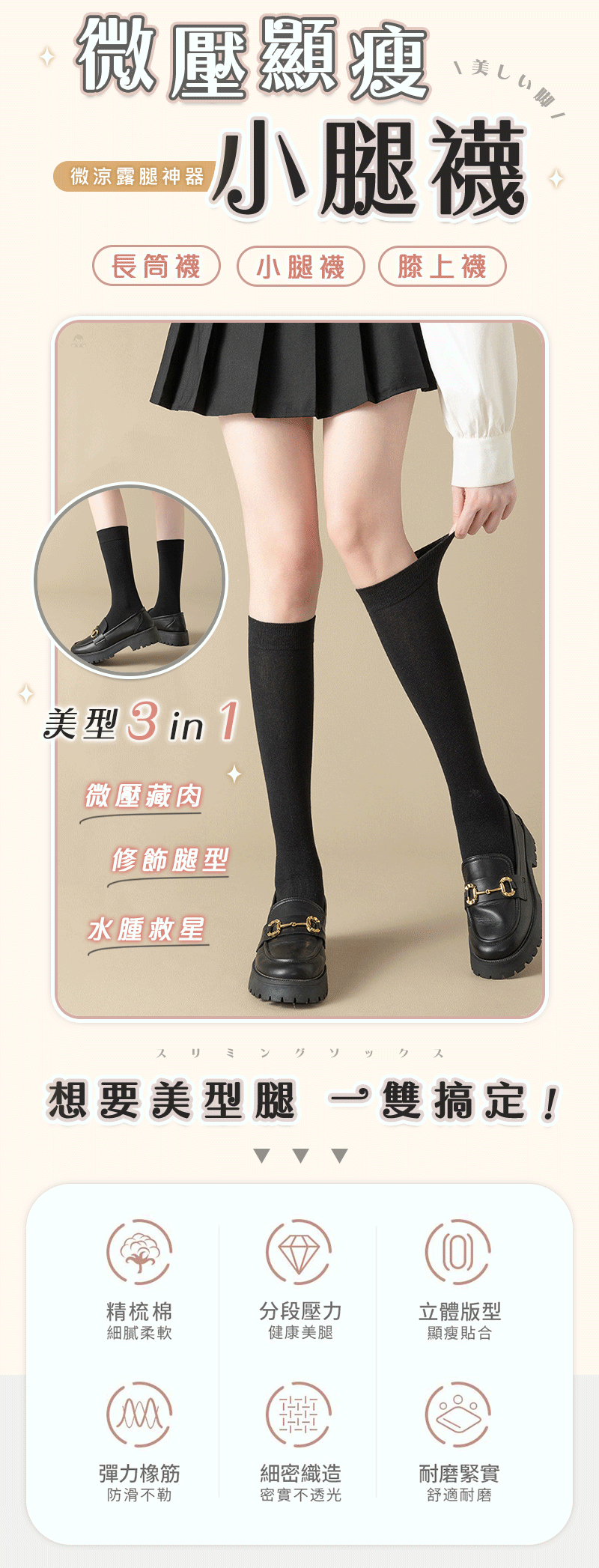 15分鐘前微壓顯瘦小腿襪 - 買一送二/ 再送免運 NT$499
