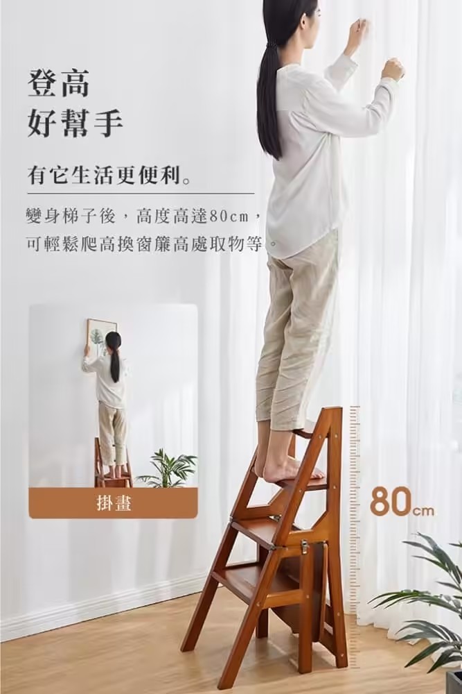 5分鐘前【現貨】二合一折疊梯子椅,木料製作,打磨精緻,可變為簡易小梯子,可幫助拿取高處物品 - 【两層|純實木|翻转收纳】NT$1880