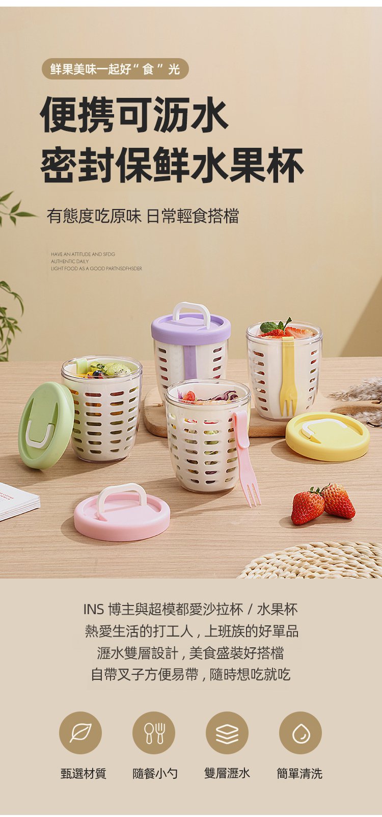 5分鐘前便攜可瀝水密封保鮮水果杯 - 買二送二1099