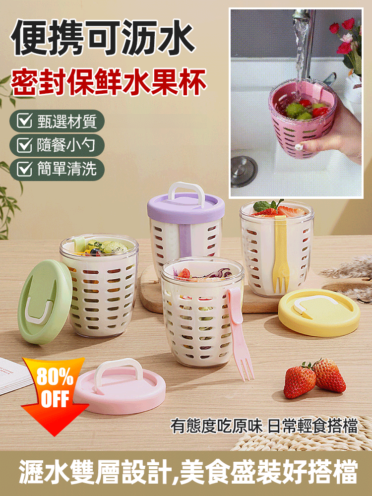 11分鐘前便攜可瀝水密封保鮮水果杯 - 買二送二1099